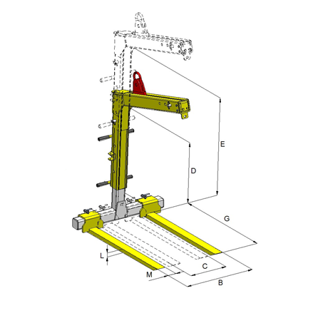 This model of lifting fork features an internal spring mechanism for an automatic load balancing.